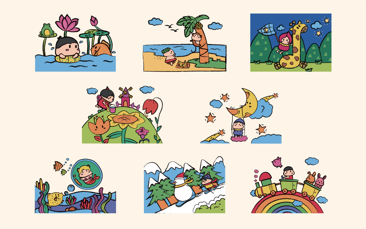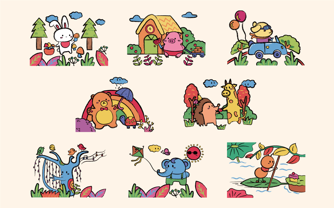產品通過將枯燥的數字、靜物、動物擬人化的畫法