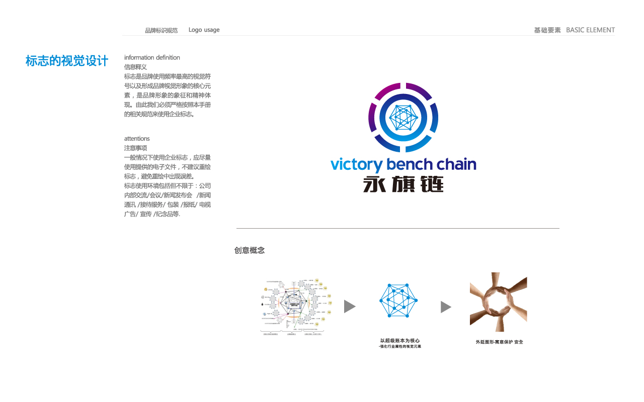 永旗鏈是區塊鏈行業的崛起新秀,由資深國外技術團隊組建。公司為初創型企業,需要從LOGO開始衍生設計一系列VI視覺規范和企業應用標識。