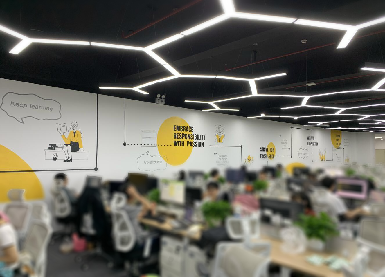客戶希望能在整體元素中融入公司產品/業務、體現企業文化及核心理念,營造創新、國際、互聯的空間氛圍。